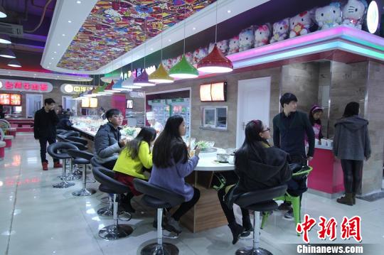 下午三点,餐厅里还有很多学生在这用餐,人气非常火爆。餐厅经理周宝富说,“近年来,很多大学生喜欢点校外的外卖,普通的食堂已经不能吸引他们的注意了,因此,将餐厅二楼进行了改造,经过对学生消费群体的调查走访,最终选择了粉嘟嘟的hellokitty。”