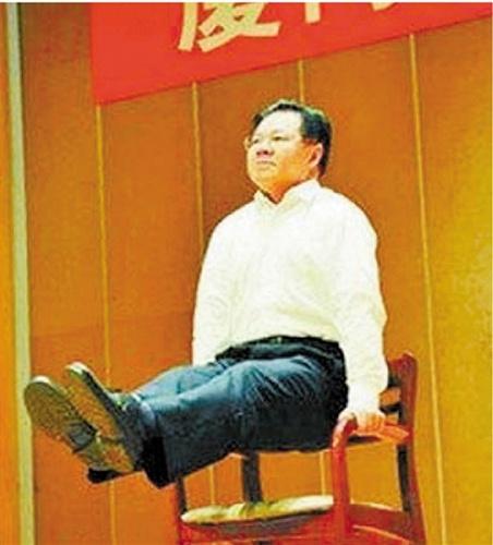 微博配图中,朱崇实校长两手撑在椅子把手上,两腿打得直直的,挺直腰板,表情淡定。