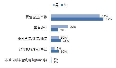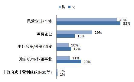 麦 可思数据显示,在各类用人单位中,国有企业是2014届男女毕业生就业比例最不平衡的。有29%的2014届就业的本科男生就业于国有企业,比本科女生 (15%)高14个百分点;22%的2014届就业的高职高专男生就业于国有企业,比高职女生(9%)高13个百分点。国有企业里有较多涉及能源、建筑、 交通运输等行业,男女比例不平衡的问题与用人单位的工作特点、工作环境有关。