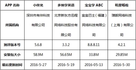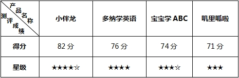 推荐如此贴心的礼物,首先还是要“科学验货”!小编结合“教育APP风云榜”及豌豆荚、应用宝等手机应用市场的下载使用排名,挑选出小伴龙、多纳学英语、宝宝学ABC、叽里呱啦四款热门的幼儿启蒙英语APP进行详细测评。以下是这几款APP的使用排名情况: