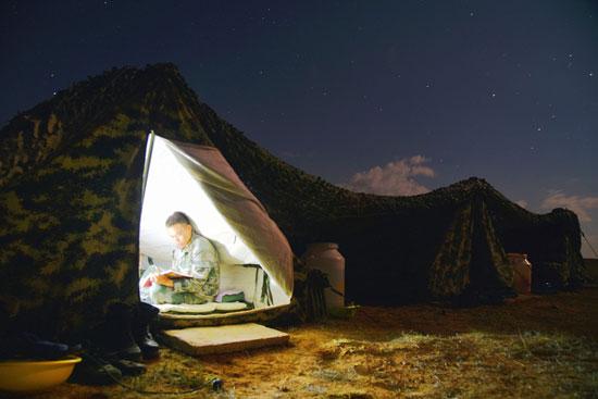右图:在朱日和驻训时,田悦在野战帐篷里读书。奥格蒙岱 施振/摄从清华大学(分数线,专业设置)毕业5年来,田悦的双手清理过旱厕的粪便、沾满过油污,也发射过火炮。