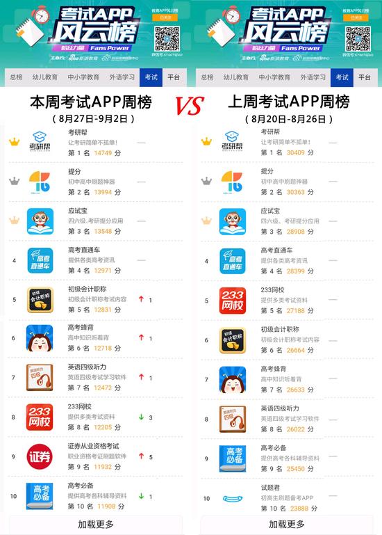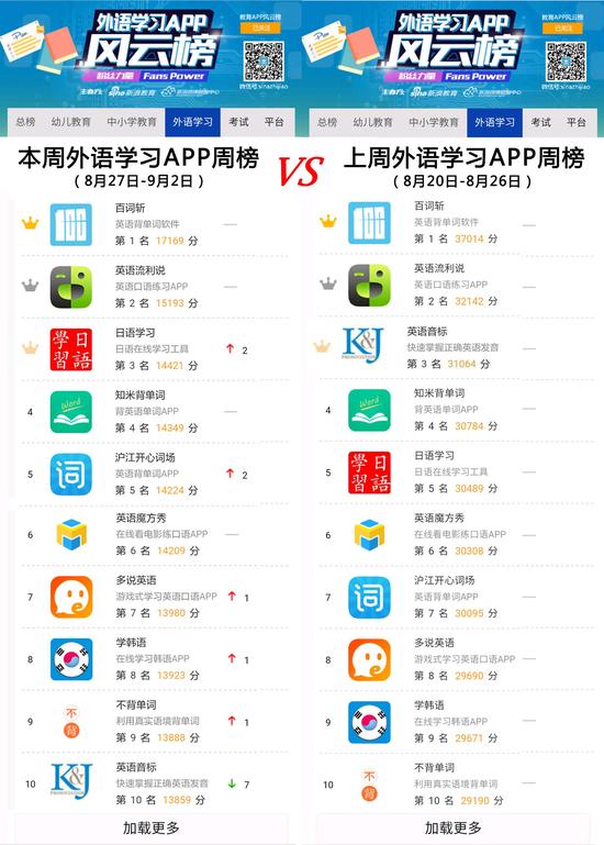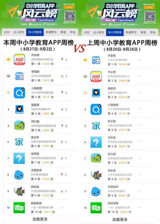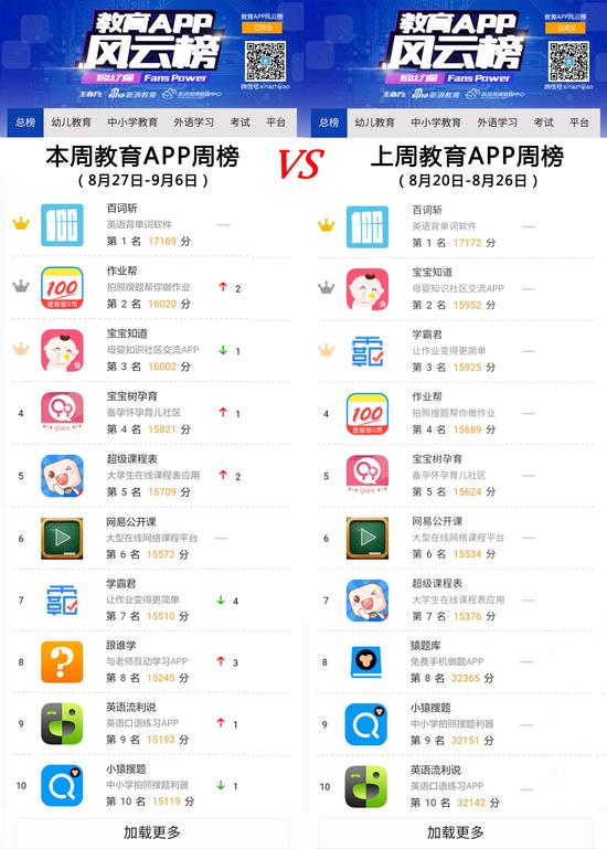 “教育APP风云榜“总榜(8月27日-9月2日)