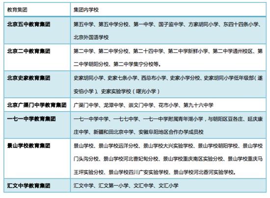 和其他城区一样,东城也基本形成了以五中、二中、史家为核心的几大教育集团。不过相比西城的教育集团,东城的教育集团规模大、学校多,甚至覆盖到北京以外地区;且教育集团实力雄厚,大部分是中学小学合力组成教育集团。