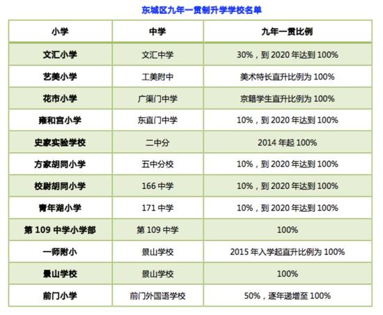 和其他城区一样,弱小对牛中的“对口直升”也是东城的教改方式之一,且已经相对成熟,某些学校的对口直升比例已经达到50%。很多人混淆了对口直升和九年一贯,认为都是小学和初中的自然过渡,但是真正的九年一贯不参考成绩,且100%升入初中,对口直升是一个小学的一部分学生40%-50%可以升到那个初中名校。