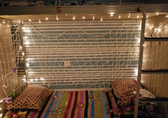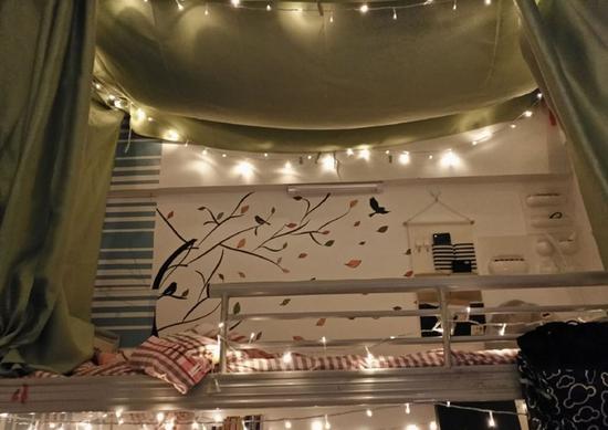 近日,重庆工业职业技术学院一男生寝室在网上走红,温馨的灯光和精致的床帘,网友直呼不敢相信这是男生寝室。该寝室大一男生深海同学介绍,布置寝室是为了让寝室更美观整洁,装修风格为地中海加小清新,墙纸和灯一共花费200多元。