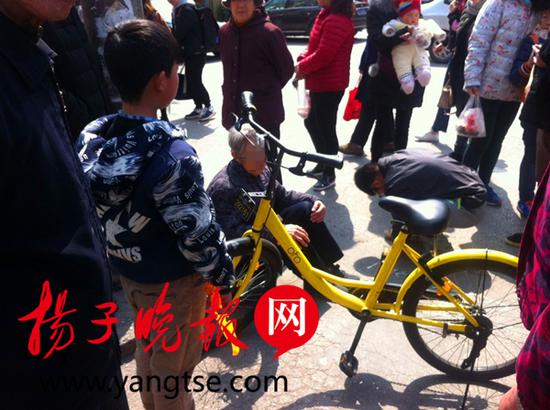 扬子晚报网3月26日讯(记者 范晓林)今天中午,一名9岁男童偷骑了一辆共享单车,在逆行经过光华东街一个路口时,不慎将一名正常行走的八旬老太太撞倒。据围观市民介绍,李老太被撞后,虽然能起来行走,但要求男童联系家长到场佐证,而男童则坚决“说不”。一老一小,在场围观群众也是处于“情非得已的尴尬”。