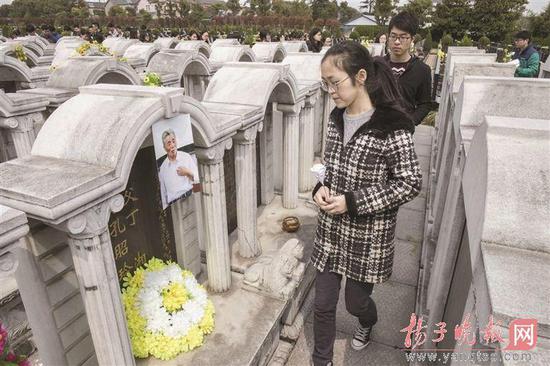 清明小长假,该院统计1301班正在南京、北京、上海等地参加实习、研究生复试、应聘面试的学生,赶到扬州墓园,缅怀丁湘老师。在扬州墓园,看着墓碑照片上丁湘老师那张熟悉的面孔,1301班女生丁亮强忍着的悲伤,再也无法压抑,泪水止不住地流了下来。身后的同学们,也纷纷掉下了眼泪。从去年下半年开始,这还是他们全班同学第一次聚集在一起。一周前,丁亮提议清明节前班级集体为丁老师扫墓,大家一个不落地赶了回来。
