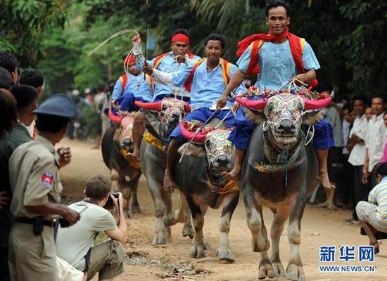 2011年9月27日,柬埔寨“亡人节”时举办的骑水牛大赛。