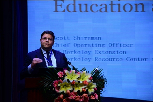 加州大学伯克利分校网络学院运营总负责人Dr。 Scott Shireman也在论坛上进行了演讲,他从伯克利在在线教育领域的实践经验、发展与推广计划、支持与激励机制的设置、跨国教育联动等四个方面深入浅出地分享了加州大学伯克利分校网络学院的在线教育经验。
