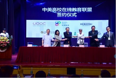 论坛上,全国地方高校UOOC(优课)联盟、深圳市优课在线教育有限公司、美国CMS Global公司、美国科罗拉多州立国际大学、美国荷晶大学、美国威尔明顿大学还共同成立中美高校在线教育联盟,该联盟将促进中美高校在线教育领域的合作发展、资源共享,推动中美高校在线课程的共建与共享,学分互认,为学生提供更好的国际教育机会。