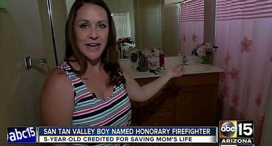 [环球网综合报道]据英国《每日邮报》4月19日报道,3月14日晚上8点,美国亚利桑那州的5岁男童萨尔瓦托雷•奇卡莱塞(Salvatore Cicalese)发现妈妈倒在浴室里头部流血、毫无知觉,连忙找来邻居帮忙,成功帮助妈妈脱离了险境。