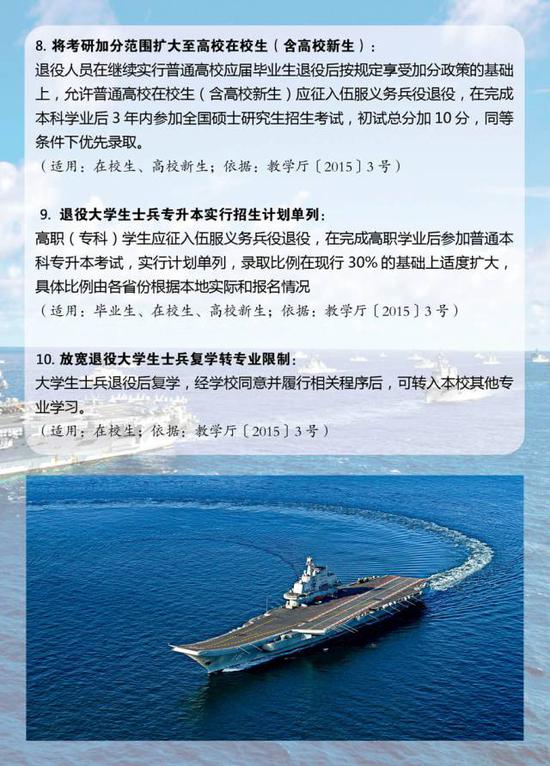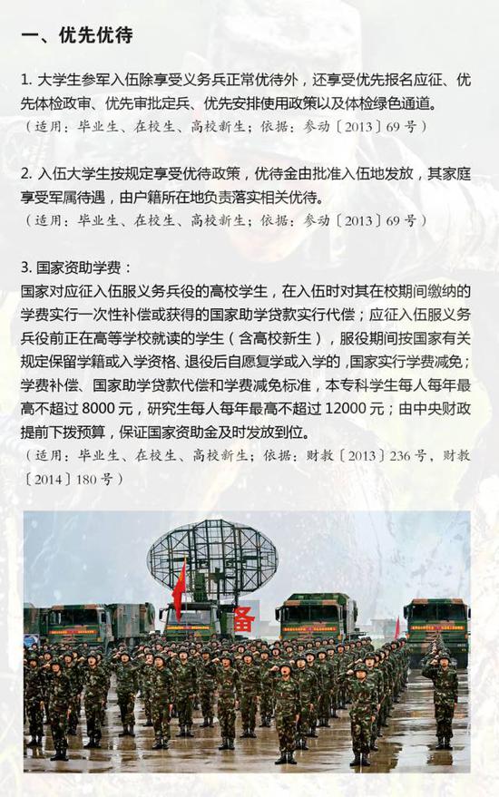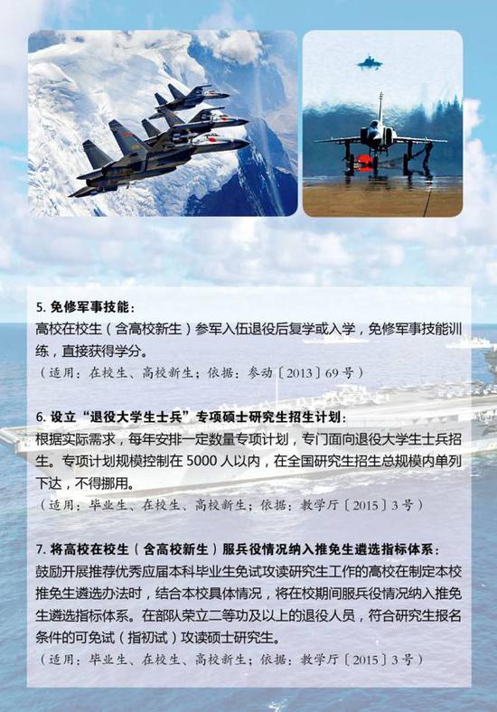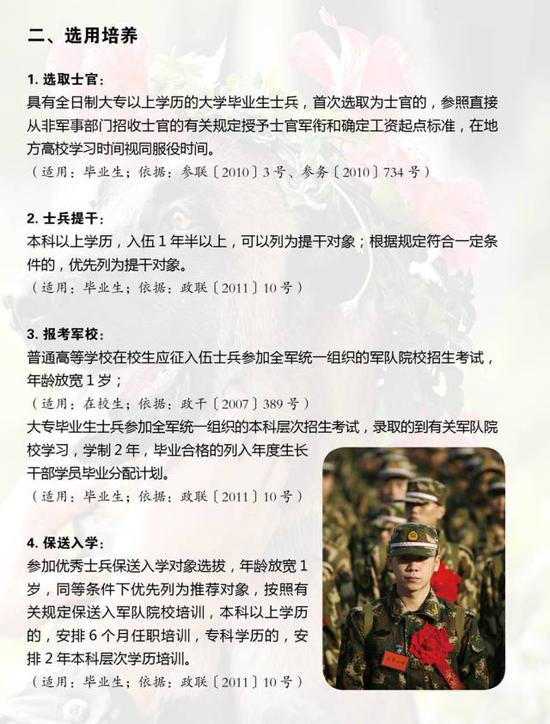 今年高校学生参军入伍有啥新政策?如何选用培养?如何复学升学?就业都有哪些方向?教育部高校学生司、国防部征兵办公室、全国高等学校学生信息咨询与就业指导中心、全国征兵网制作的宣传手册对这些问题进行了详细说明。
