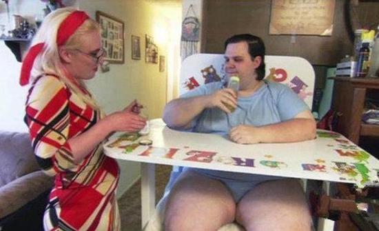 这真是啃老无极限啊!不过,还有比他还牛的。堪称世界上最牛的啃老族!恰好也是一个40岁美国的男子,每天还要靠父母喂食,穿尿布。定制的婴儿用品让他40岁依旧如婴儿般享受着这父母打下来的江山和父母帮他扛着的挫折。