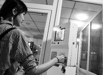 记者看到,一名女生走到机器前面,在数字键盘上输入一串数字,然后直视机器屏幕,脸部识别成功后,机器发出“欢迎回家”的声音。记者注意到,在脸部识别成功之后,如果没有立即开门,大约三四秒钟,宿舍门又会重新锁住。
