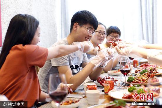 “马上就要毕业各奔东西了,希望大家前程似锦。”6月7日,在河南郑州东区CBD一家餐厅内,来自某大学毕业班的学生们欢聚一堂,共享美味。据了解,这个饭局是班长小田用自己挣的钱来请同学的。相处四年,大家积累了深厚的友谊。
