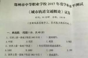 参加今年郑州中等职业学校学业水平测试的5所学校的城轨专业学生在6月14日的考试中发现,这张名为郑州市中等职业2017年度学业水平测试的试卷中,选择题的前三道题考的是同一个内容:世界上第一条地下铁道1863年在英国伦敦建成通车,只是挖空了不同的关键词作为选项,三道题的题干互为答案。一时间,这张郑州市中等职业学校学业水平测试试卷迅速走红,被网友戏称为“雷人送分试卷”。