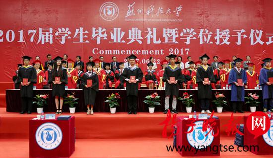 据悉,今年苏科大取得学士学位的3425名,取得全日制研究生硕士学位的252 名、在职研究生硕士学位的 23名,22名来自非洲和美洲10个国家的苏科大首届环境工程专业国际硕士生顺利取得硕士学位。截止目前,572名毕业生收到国(境)内外高校录取通知,考取“985工程”、“211工程”类院校的人数超过70%。