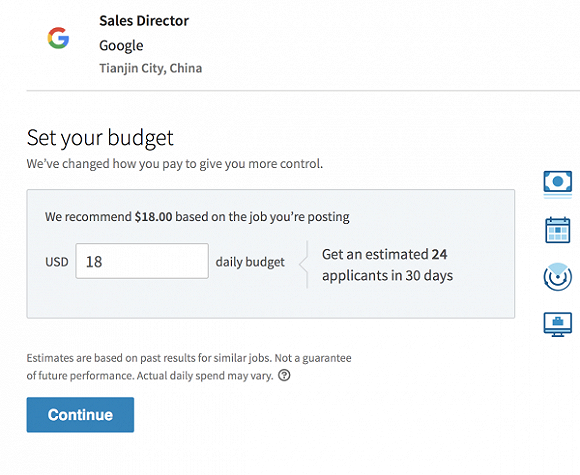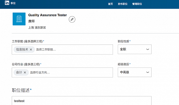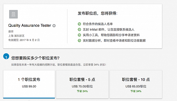 知乎用户@Sean Ye做了同样的试验,他原本是Mercer的HR,但发布了一个Google在天津销售总监的职位,也是走到最后的付款流程。不过,Sean也之初,Linkedin要用信用卡付款,虽然也有漏洞。