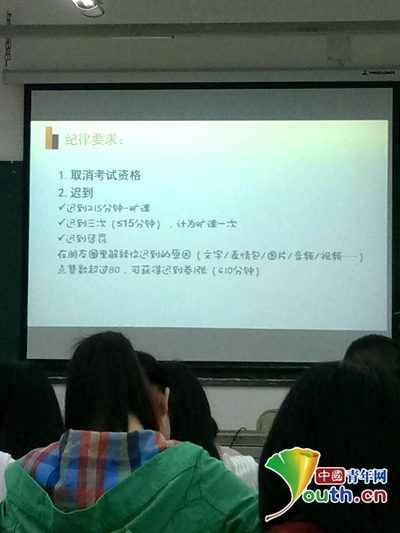 图为该校纪律要求。四川外国语大学成都学院豆欢欢老师 供图来源:中国青年网