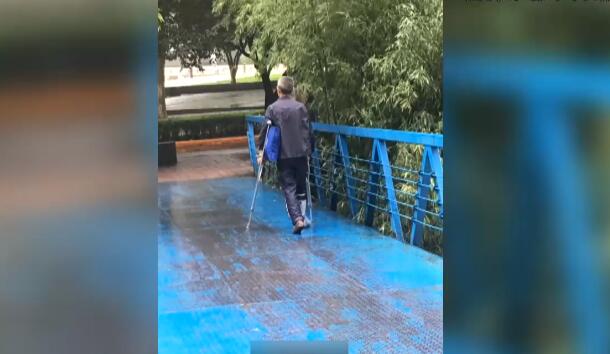 西安交通大学大三学生王晨浩介绍:“他把拐杖放在了一个我们都不会去看的地方,然后一直在哪里站着,而且那个讲台会把他的下半身挡住,所以我们当时都没有意识到。挺敬佩老师的,那天还是下着雨。”