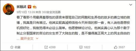 对此,北京大学(分数线,专业设置)中文系教授张颐武也于昨天(10日)在微博评论道: