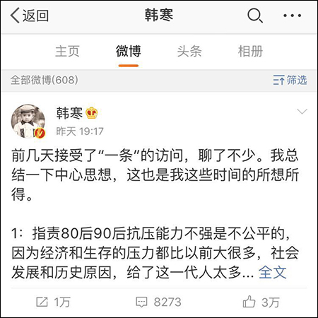 以下为韩寒微博全文: