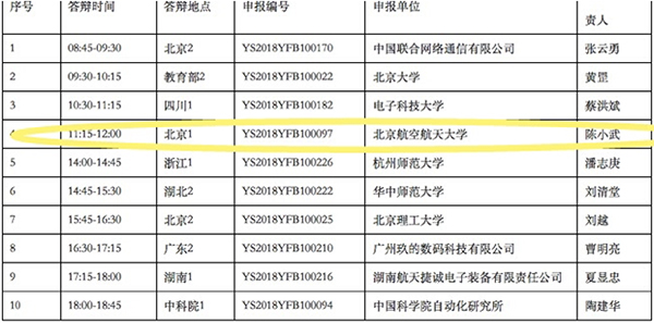 国家重点研发计划“云计算和大数据”重点专项2018年度申报项目视频答辩安排公告中出现“陈小武”名字。 国家科技部高科技研究发展中心官网截图