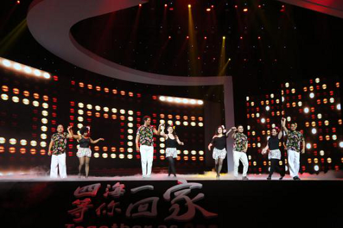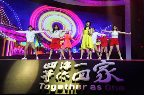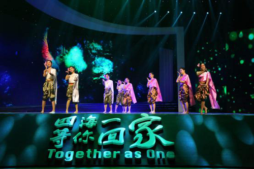 吉米表演戏曲演出最后,校园原创音乐《四海一家》歌声响起,全体演职人员上台谢幕,并与到场领导和嘉宾合影留念。