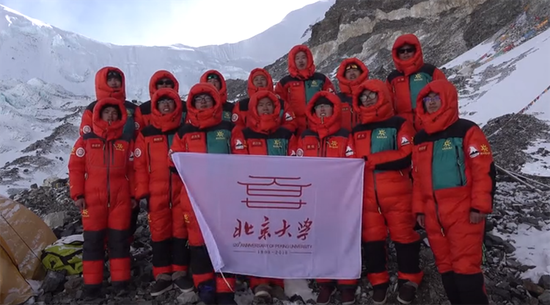 珠穆朗玛峰——8844米,世界最高峰。连绵的山脉,肃穆的天地,宛若亘古神话,呼啸的风和白云掠过耳边,兴奋的心跳声响彻天地。北大百廿校庆之际,正在攀登这座山峰的北大登山队队员们向母校发来最高、最勇敢的祝福。