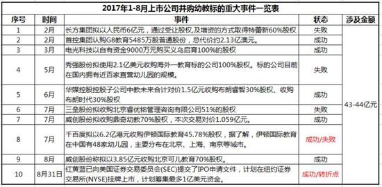 2017年1-8月,幼儿园并购大热