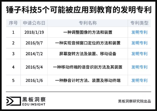 对此,黑板洞察通过交叉对比锤子科技和今日头条(字节跳动)的专利信息,分析了锤子科技的哪些专利有可能会被今日头条用于探索教育领域。