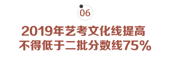 要求指出,除经教育部批准的部分独立设置的本科艺术院校外,2019年高校美术学类和设计学类专业一般不组织校考。2020年起使用省级统考成绩,不再组织校考。艺术类本科专业高考文化课录取控制分数线,在未合并普通本科第二、三批次的省份,原则上不得低于本科第二批次录取控制分数线的70%,在合并原普通本科第二、三批次的省份,原则上不得低于合并后第二批次录取控制分数线的75%,确需过渡的省份,应在三年内调整到位。
