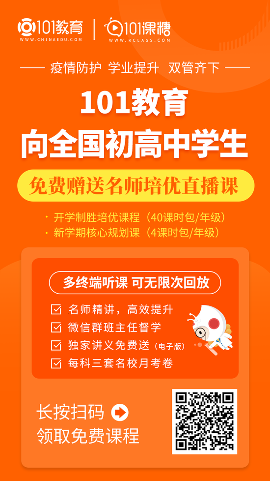 为了尽可能地帮助学生们缓解学习压力,跟上学习节奏,备战中高考,101教育(原101远程教育网)面向全国免费开放“春芽计划”系列课,帮助学习吃力的学生赶上学习进度,帮助学有余力的学生拓展提升。101教育这一举措不仅要帮助全国学生“停课不停学”,更希望帮助他们“学习更优秀”。