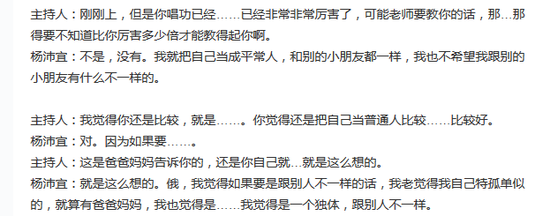 从这句话里八姐(bajieshuojiao)感觉出杨沛宜有着超出年龄的成熟,不带盲从和奉承: