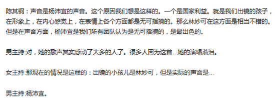 与之对比的是,奥运《歌唱祖国》的原唱杨沛宜生活就低调得多。08年奥运开幕式上处于换牙期由于“形象不佳”只能“出声不露面”的杨沛宜,当时引起了人们的争议。