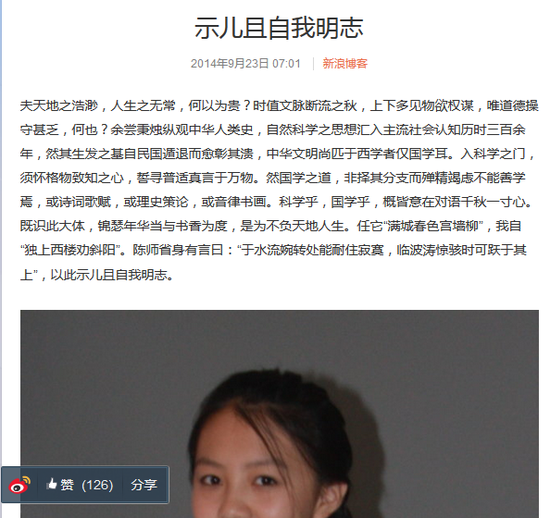 没有借着开幕式的热度走上明星的道路,但父母会征询她的同意适当地去参加一些活动来增长她的见识。