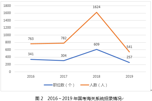 1。 海关招录职位数和人数骤减