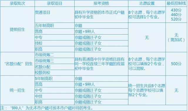 (1)参加除贯通项目以外其他学校提前招生的考生不需网上填报提前招生志愿。考生需于7月3日-4日持“中考准考证”、“中考成绩单”和“2017年北京市高级中等学校招生体格检查表”到提前招生学校领取“2017年北京市高级中等学校提前招生录取登记表”,按要求进行专业测试。