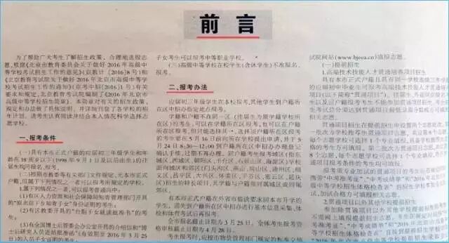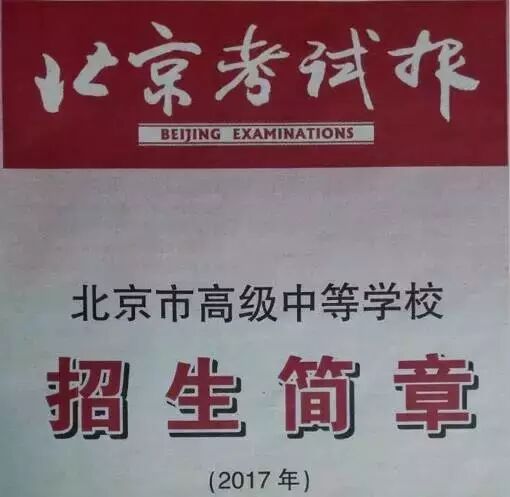 1。北京教育考试院编制的《2017年北京市高级中等学校招生简章》(北京考试报中招特刊第4期)和北京考试报中招特刊