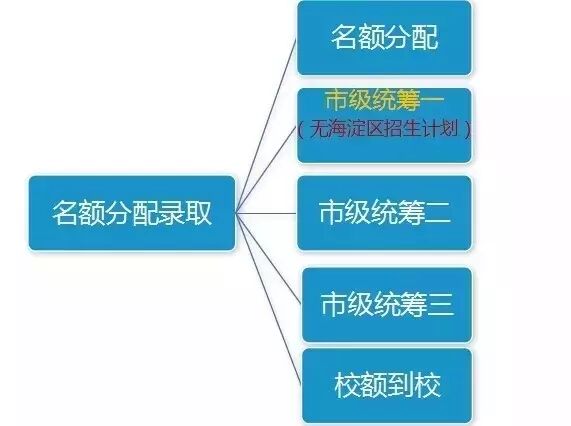 50%的名额分配比例由两部分构成,一部分是招生简章中的“名额分配”,一部分是“市级统筹”和“校额到校”。其中“校额到校”的入学方式是为了保证公办一般初中学校上优质高中的比例不低于35%,海淀区共有15所优质高中面向区内40所一般公办初中定向招生598人。