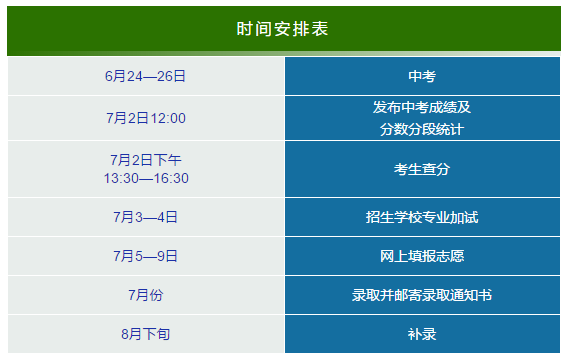 参加统一招生录取的考生需在7月5—9日上网填报志愿。统一招生录取中还包括“特长生”等对特殊学生的录取。