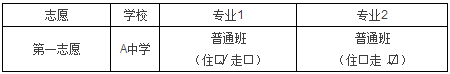 住宿生在统一招生填报志愿时也要占用一个专业,有住宿条件的学校,住宿名额都有限,所以在同一个学校里,住宿生的分数比走读生的分数要高一些。因此,既具备住宿条件又具备走读条件的考生,在填报统一招生志愿时,可以将该校的第一专业填为住宿,第二专业填为走读,这样可以提高被该校录取的几率。如: