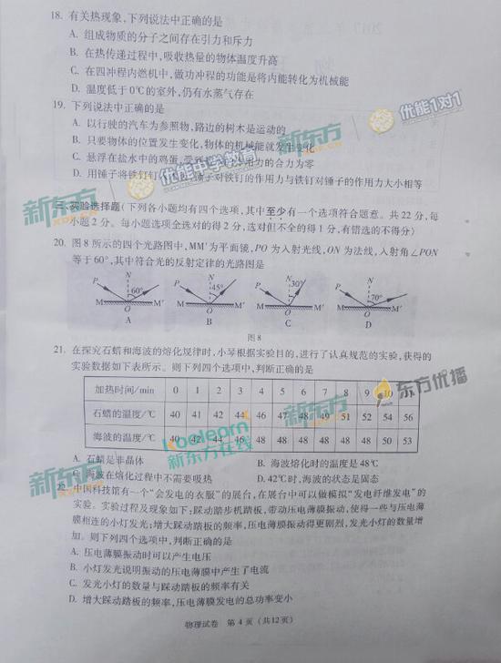2017年北京中考物理真题及参考答案(新东方)(4)