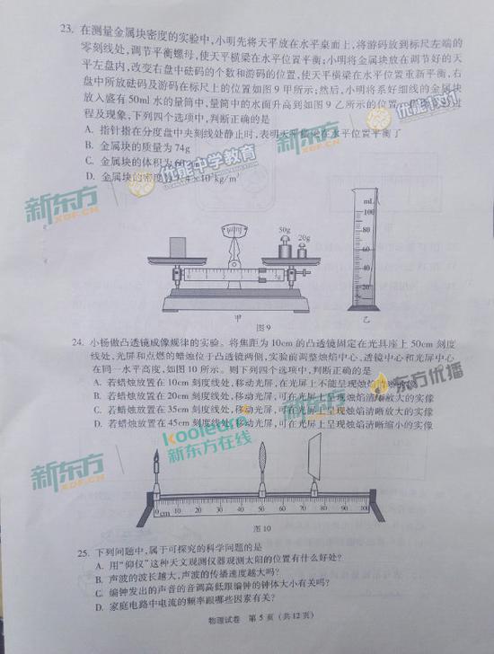 2017年北京中考物理真题及参考答案(新东方)(5)