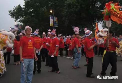 这样大的游行,没有华人参加哪行?红色是华人的传统色,舞龙舞狮一直是华人的传统节目,好像在人们心目中,没有龙和狮就不成为华人,不管在哪里的活动中,只要出现华人,就是这个场面。