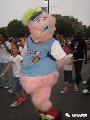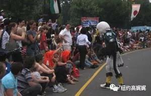 还有一个现象就是,游行中有好多这种装扮,他们很活跃,他们常常在游行队伍和观众人群中,窜来窜去,逗孩子们,有时还有礼物送, 他们的出现惹得观众中孩子和大人呼声一片又一片。 美国的国庆是国家法定假期,全国上下放假,好多人都是拖家带口出动来看热闹。