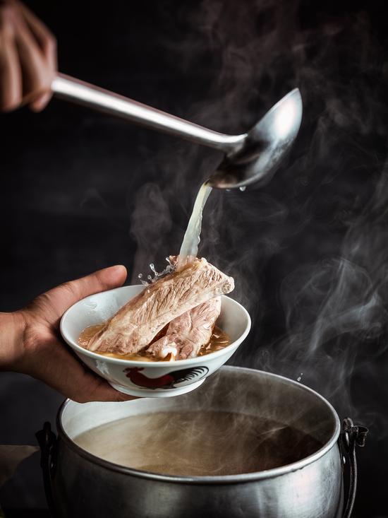 在松发,人均八十多元,即可享用到一份正宗的特级龙骨汤,一份小菜和一叠必备的油条。如果邀上家人朋友,建议再加一两份秘制卤味,慢慢吃出那时间的味道。盛肉骨茶的汤碗并不大,每只碗上都刻画着旧时光的花纹,喝完一碗,还可以无限续上原汁原味经过七小时炖煮的肉骨汤。肉骨茶要趁热才好喝,白胡椒的香气会通过热量散发出来,续汤虽然是件很费人工的事,但希望保证客人喝的每一口汤都是热的。这是松发的温度,也是松发的承诺,将肉骨茶的文化不断推广,坚持49年的好品质,持续服务一代代的肉骨茶爱好者。