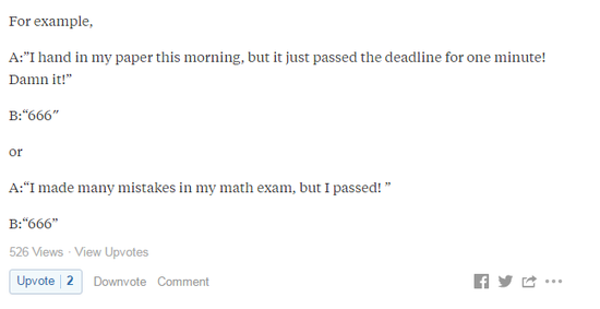 但互联网的迅速发展,让原来不能相互理解的文化差异也变得不那么“刺眼”,或者说可以被理解了。像是在墙外版的“知乎”(quora)问答上,也有很多人用英文解释了“666”的中文含义,甚至贴心地举了例子。