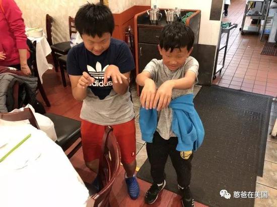 虽然问题很简单,结果两个小家伙都开心的不行,不停地问我还要考什么,还要考什么。好吧,拗不过他们的兴致,我继续发掘餐馆里的各种道具。