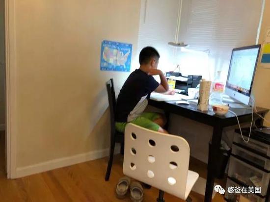 因此,为了便于我侦查,我将书房设置成了背靠背的书桌摆放模式,憨憨的书桌在我的背后,这样只要我一回头,就能看到他的屏幕,如果憨憨走神或者玩游戏的话,我立刻“咳咳”几声,小家伙吓得一哆嗦,立刻就会乖乖切换回学习模式。